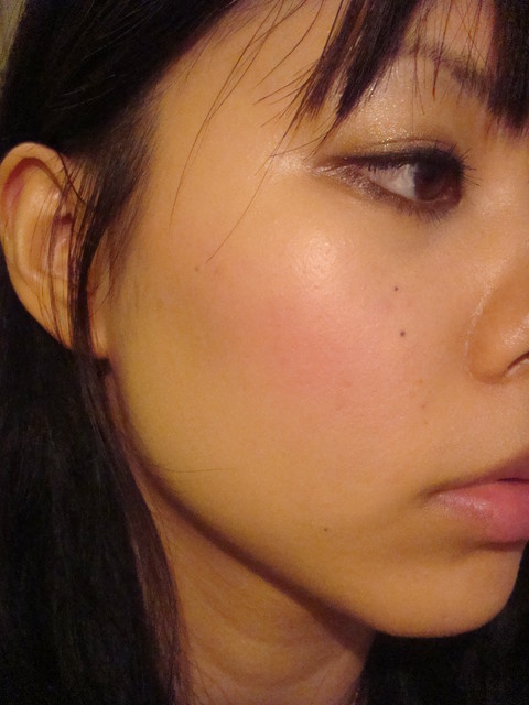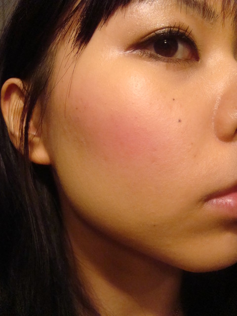 一開始我忘記了用平常刷別顆腮紅的方法刷,結果超~紅~的 囧