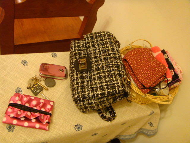 旁邊小籃子放的是平常會用的手帕,毛巾等、還有口罩