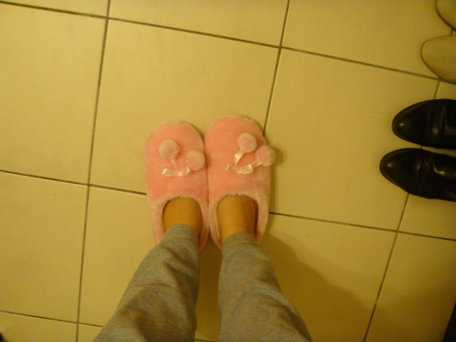 就是這種搞剛的毛毛拖鞋啦~在屈臣氏買的