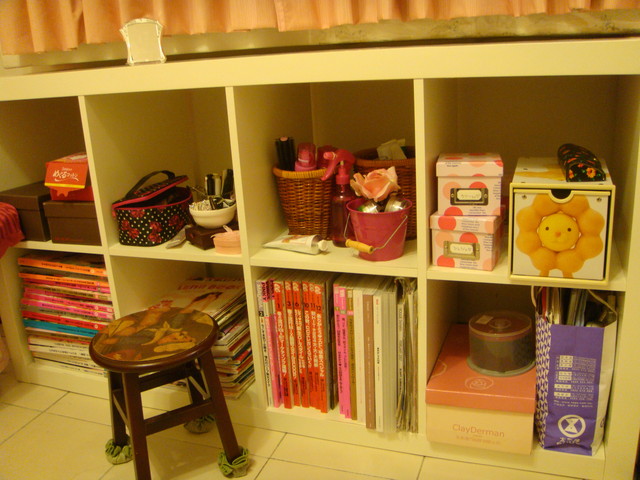 放雜誌跟化妝道具,上面那排全部都是