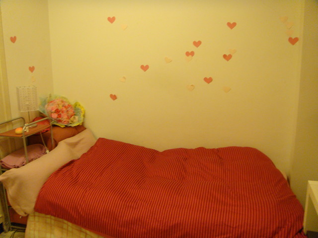 就用剛剛貼書櫃剩下的紙剪了一堆愛心