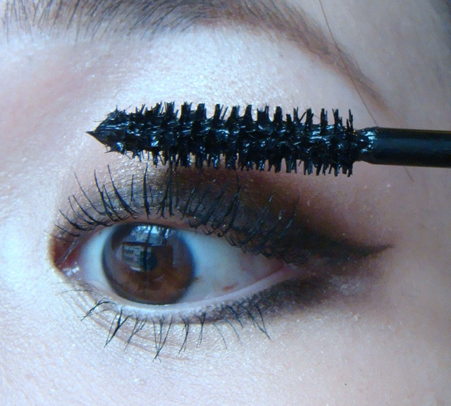 拿直的左右輕刷,慢慢往睫毛尖端拉長
