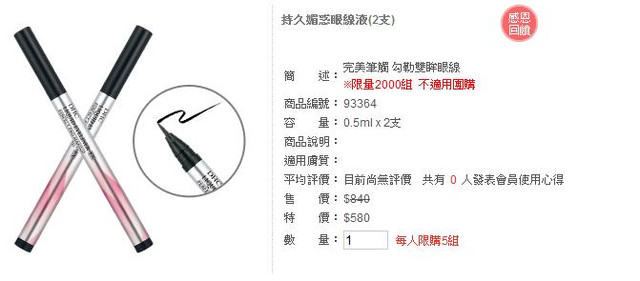 剛剛從官網截下來的圖, 眼線液好像剛好有特價