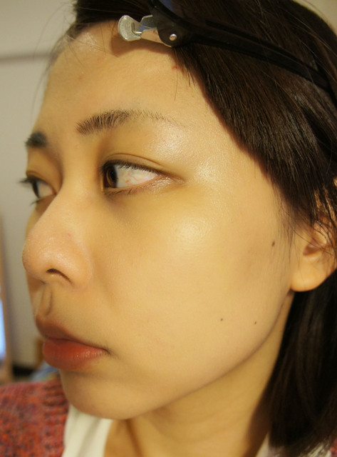 你看還是看得出來吧~ 膚色就會有點不均勻花花的感覺