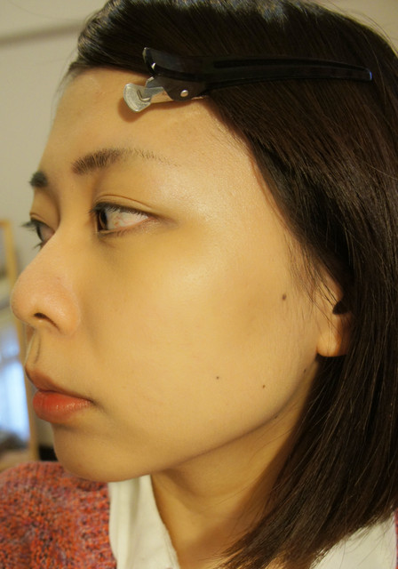 因為壓完蜜粉, 剛剛覺得妝感很好的側面也沒有那麼美了~