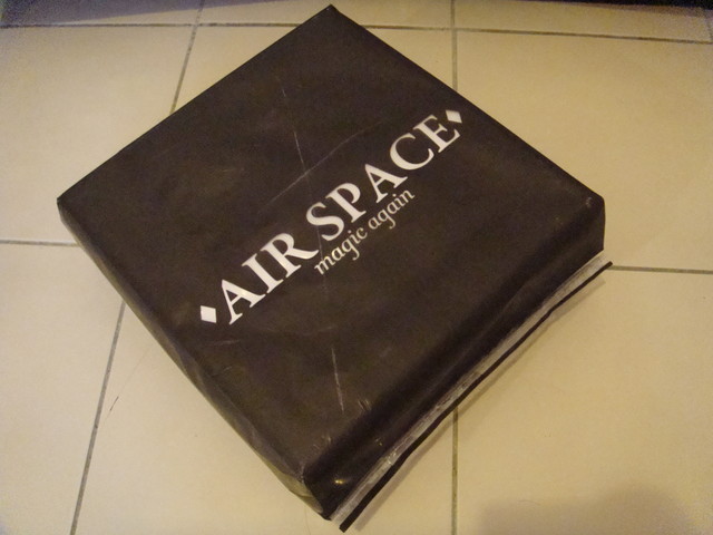 他的包裝是一個塑膠材質的大手提袋黏起來