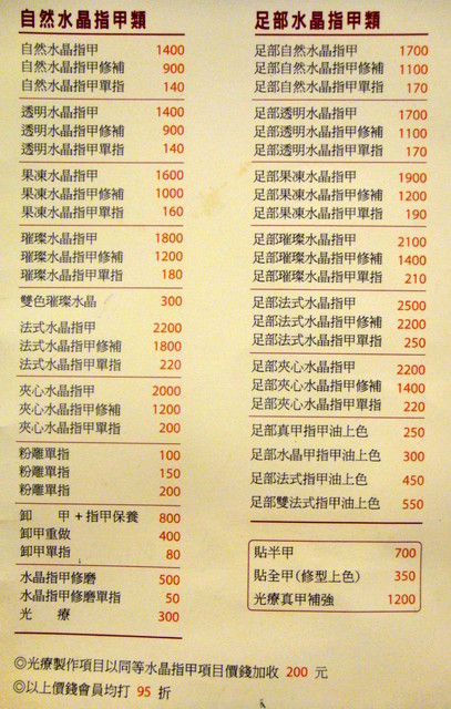 價目表在這。我做的是左邊手足保養類~