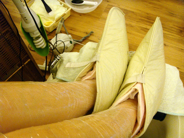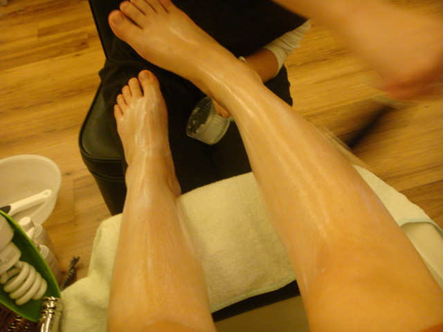 敷完熱腳套的腳。是不是很光亮??