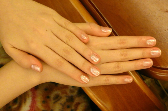 我塗了一點亮片的指甲油