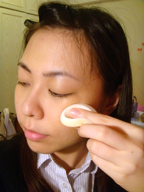用海綿上的粉餅,比上粉底液+蜜粉更來得自然呢!!